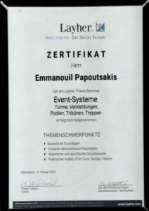 Η Concert Copa Services είναι μια εταιρεία με 21 χρόνια εμπειρίας στον χώρο των τεχνικών εγκαταστάσεων, ειδικευμένη στην κατασκευή και τοποθέτηση εξέδρων για συναυλίες, τηλεοπτικές παραγωγές, εκδηλώσεις και σκαλωσιών για τεχνικά έργα. Από την ίδρυσή μας μέχρι σήμερα, παραμένουμε πιστοί στο όραμά μας: να παρέχουμε ασφαλείς, αξιόπιστες και προσαρμοσμένες λύσεις που ανταποκρίνονται απόλυτα στις ανάγκες κάθε έργου.